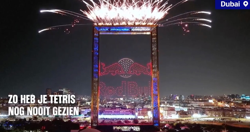 Zo heb je Tetris nog nooit gezien. Het iconische spel waarbij je blokken moet klaren, wordt voor het eerst gespeeld… met maar liefst 2800 drones.