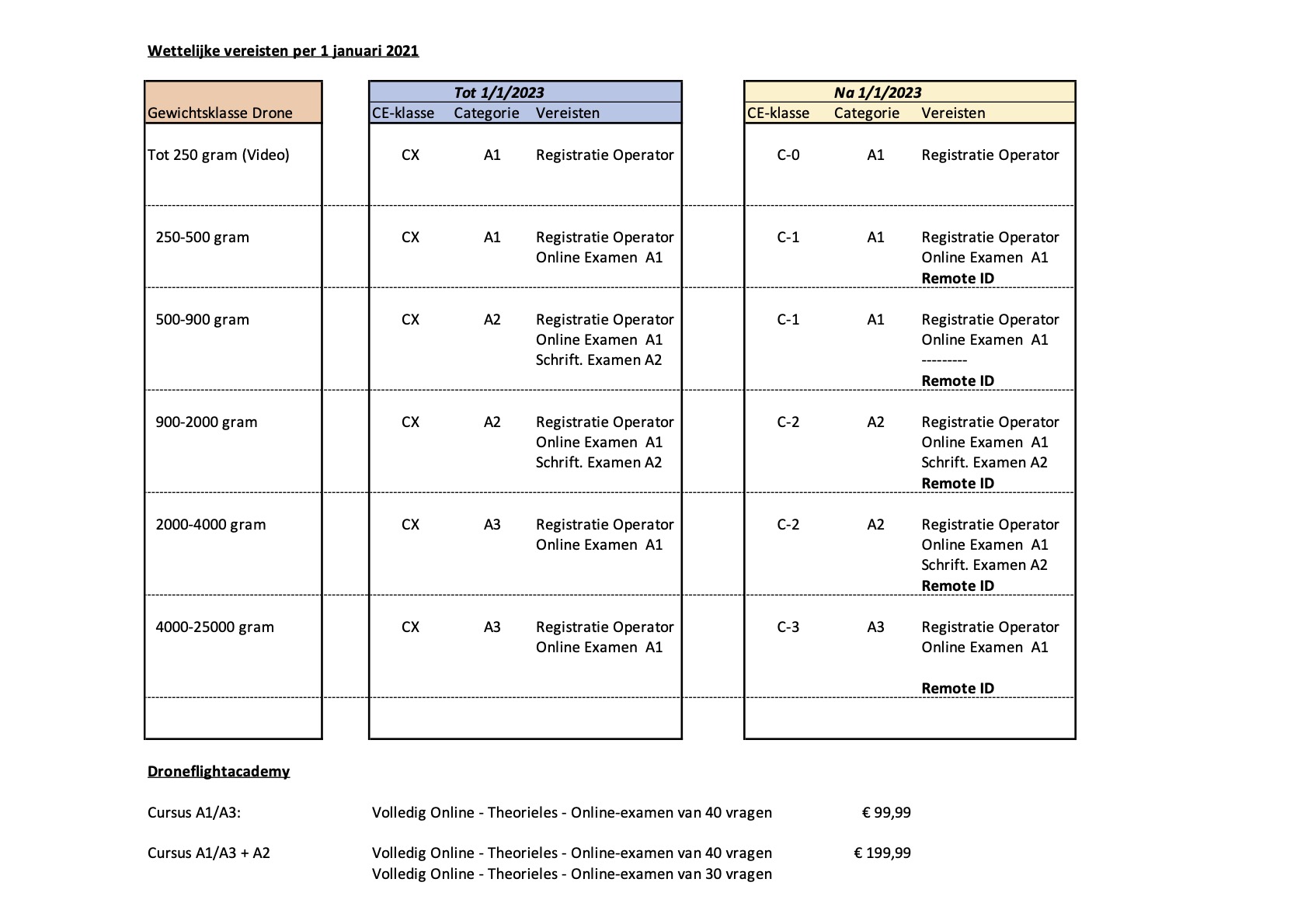 Nieuws, Registratie en WetgevingOverzicht vereisten per drone Posted by Alfons Daems maart 21, 2021 On februari 28, 2021 0